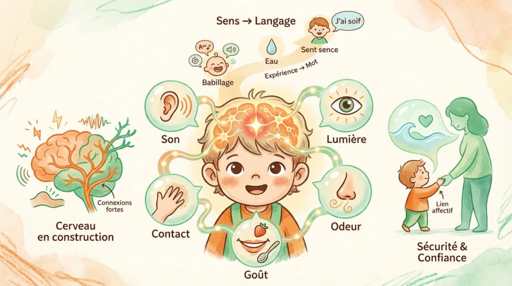 Quel est le lien entre l’éveil sensoriel et l’apprentissage du langage ?