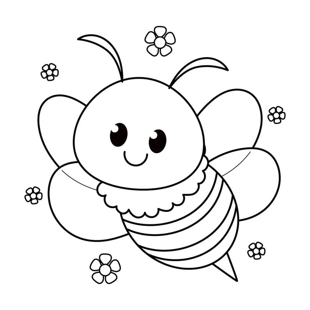 Notre premier coloriage presente une abeille toute ronde au style kawaii. Son grand sourire et ses yeux expressifs séduisent immédiatement les tout-petits. C’est l’idéal pour une première expérience de coloriage réussie.